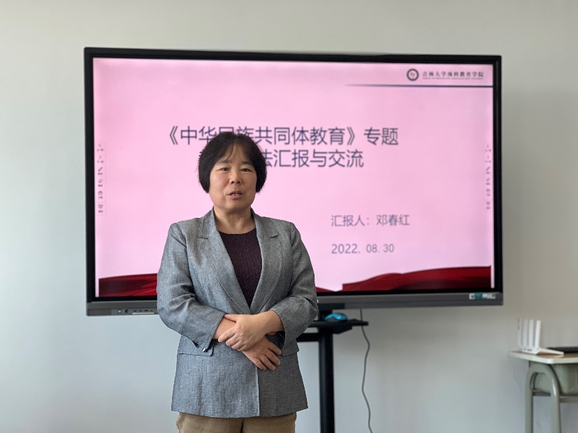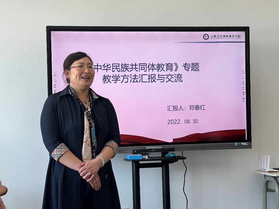 邓春红老师本次分享的主题是《中华民族共同体教育》专题的教学方法。她介绍了根据课程内容和预科员工特点所采用的自主学习教学法、情境式教学法、案例教学法、实践活动教学法、探究式教学法,展示了教学效果和员工反馈,并谈了自己在教学实践中的体会和感悟。