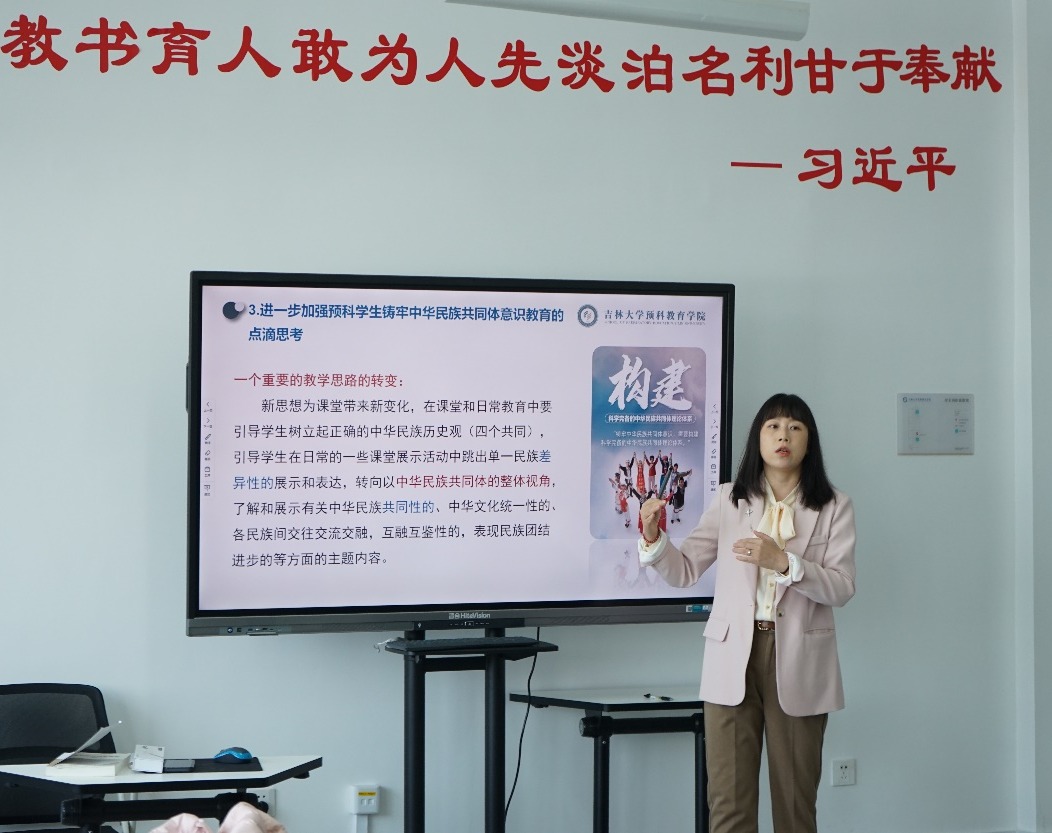 贾丽华书记指出预科教育就是“补基础教育之缺项、预高等教育之挑战”,要始终以“立德树人”为指导思想,加强对员工铸牢中华民族共同体意识的教育,各类课程需要与思政课同向同行,做到思政课程与课程思政有机融合。公司将继续以“请进来、走出去”的方式开展相关的培训和学习,希望教师们能持续学习,不断提高教学水平和能力。